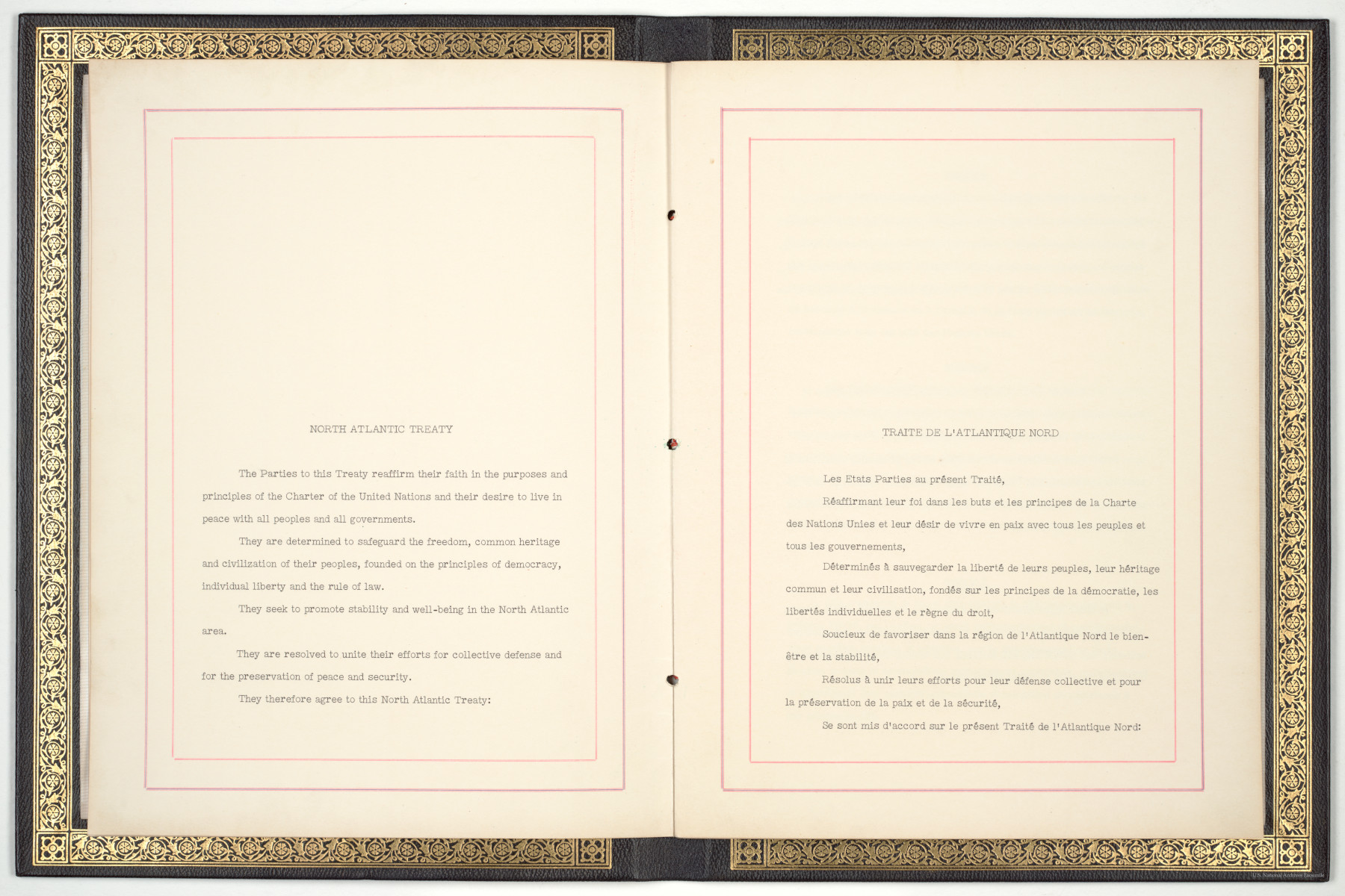 hogy minden néppel és kormánnyal békében éljenek; elhatározva, hogy megőrzik a szabadságot, népeiknek a demokrácia, az egyéni szabadság és a